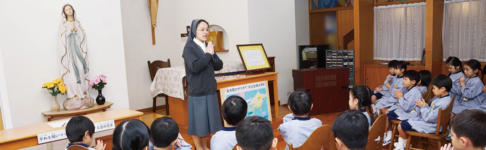 ミッションスクールとして、カトリック教育を土台とした宗教教育を行い、人生の目的と意義を指し示し、神と人との前に誠実な心、人のために奉仕する愛の心を育てる教育活動を展開しています。