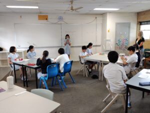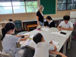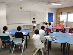 まず、ステイ先の家族についてのスピーチをした後、オーストラリアと日本の違いを話を合ったり、ワークシートを使いながら英語の学習を行いました。