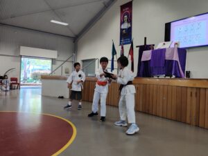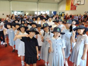 午後は、全校集会に参加し、空手と聖歌「ごらんよ空の鳥」を披露し、大きな拍手を頂きました。現地の子ども達もとても楽しんでいました。