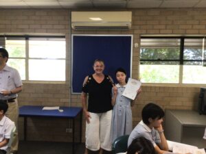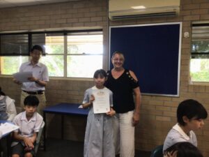 学校で過ごす最後の日を迎えました。ジョディーさんとの最後の授業を受けた後、一人ひとり修了証を頂きました。修了証を受け取った子ども達は、達成感に満ちた顔をしていました。